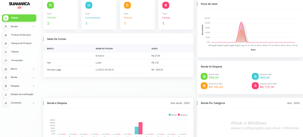 Um dashboard em tempo real. Cada entrada e cada saida de forma simplificada.